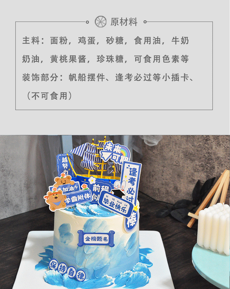 ?蛋糕標(biāo)配:刀、叉、盤+一個(gè)生日帽+10支蠟燭;